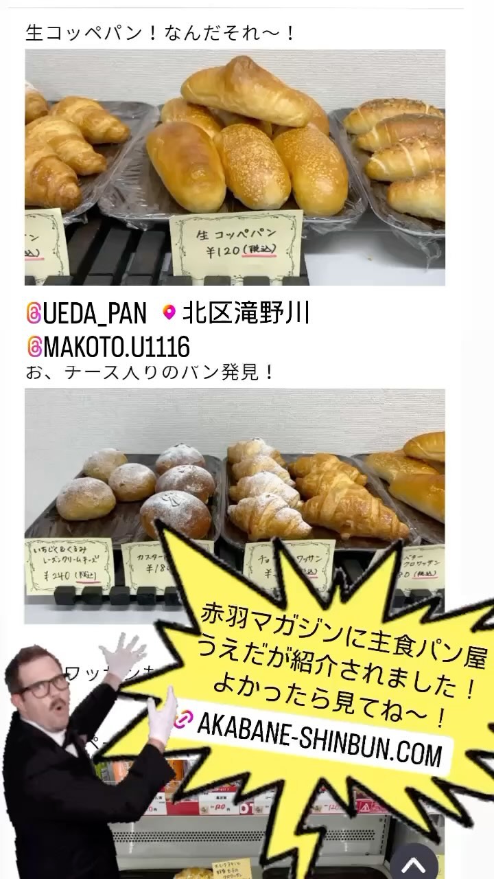 「主食パン屋うえだ」からのお知らせです。 「主食パン屋うえだ」が赤羽マガジンにて ご紹介頂きましたので皆様にお知らせ申し上げます。 宜しければご覧頂ければありがたいです。 宜しくお願い申し上げます。 #肴とお酒うえだ #… 続きを読む 「主食パン屋うえだ」からのお知らせです。