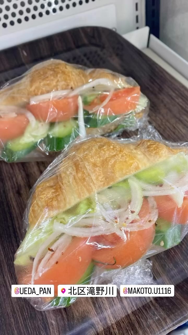 主食パン屋うえだ本日のラインナップ 定番的なセサミ焼きカレーパンや 塩バターパン3種類等を中心に クロワッサンの野菜サンドや 自家製玉子サラダコッペパン等々 #…